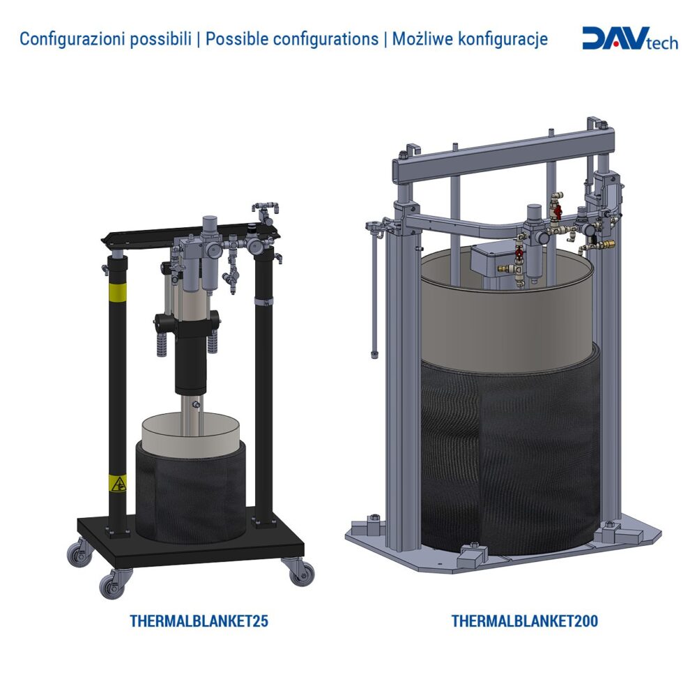 DAV Tech heating blankets are designed to maintain a constant and controlled temperature for various types of fluids (greases, resins, high-viscosity silicone oils, sealants, etc.).