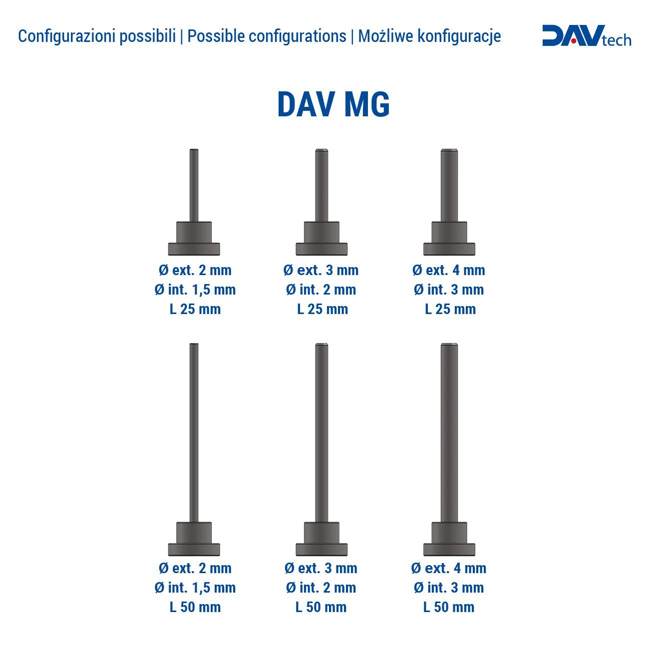 The MG nozzles, featuring a fully stainless steel body, are entirely designed and manufactured by DAV Tech. They are the perfect solution for high-precision applications and can also be used with aggressive materials.
