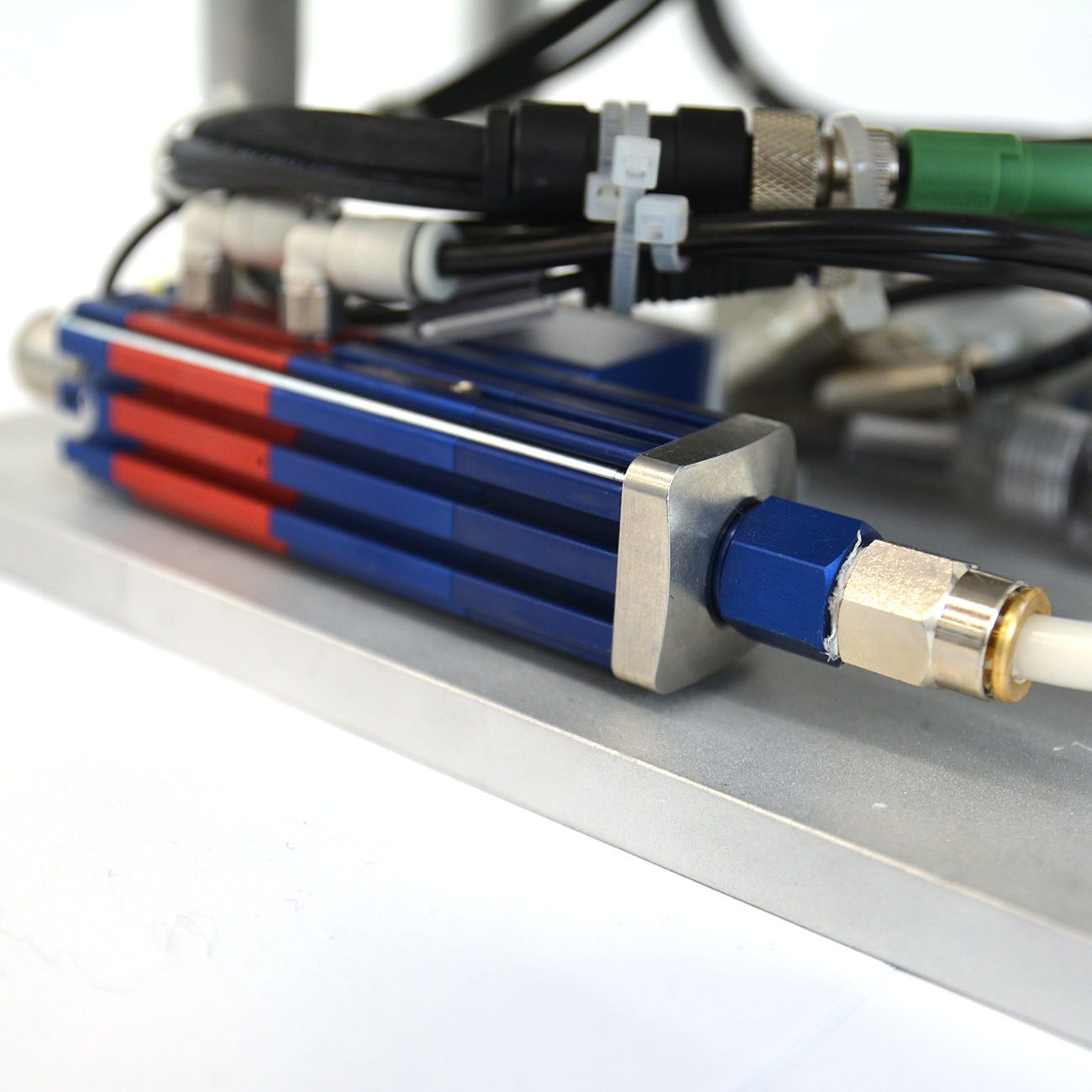The pneumatic system has been implemented to precisely manage the applicator drive and ensure uniform dispensing.